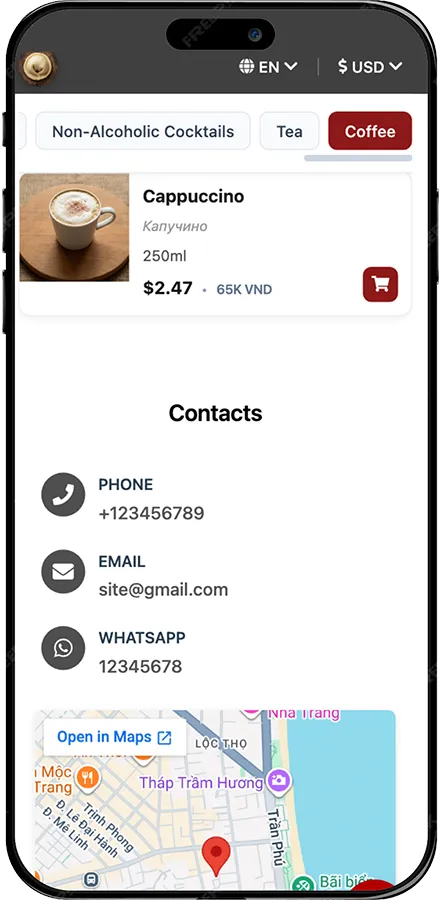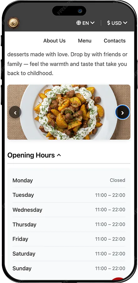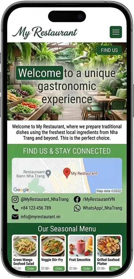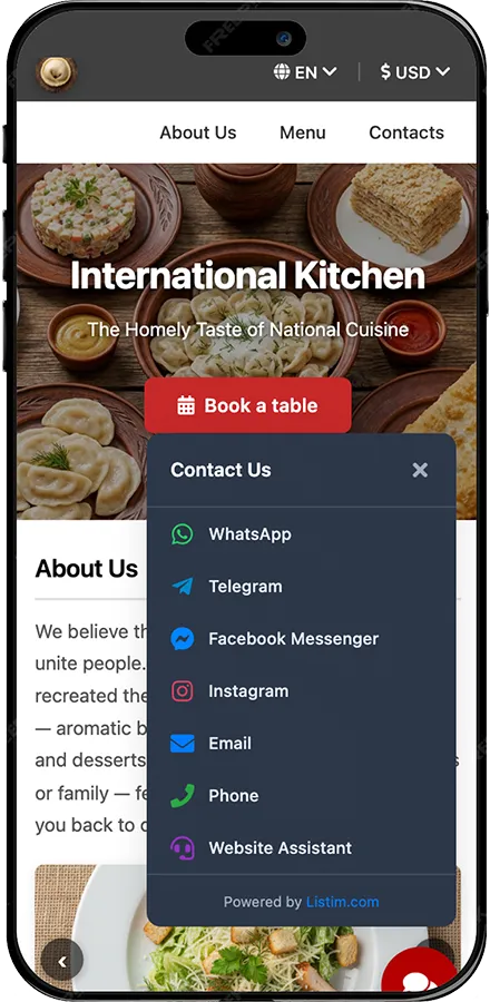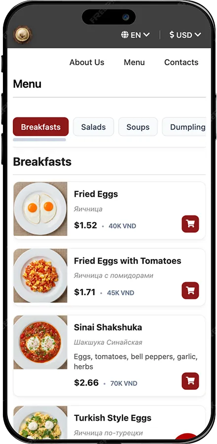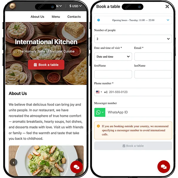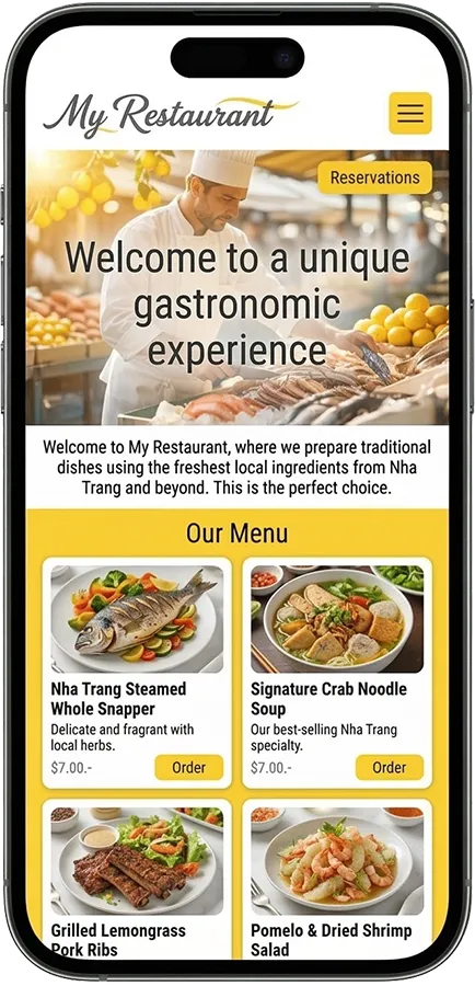 Make your restaurant easy for tourists to understand: translations, currency conversion, table booking, and online ordering — all in one site.