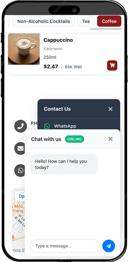 - We will connect all tools — booking, quick contact buttons, map, etc.