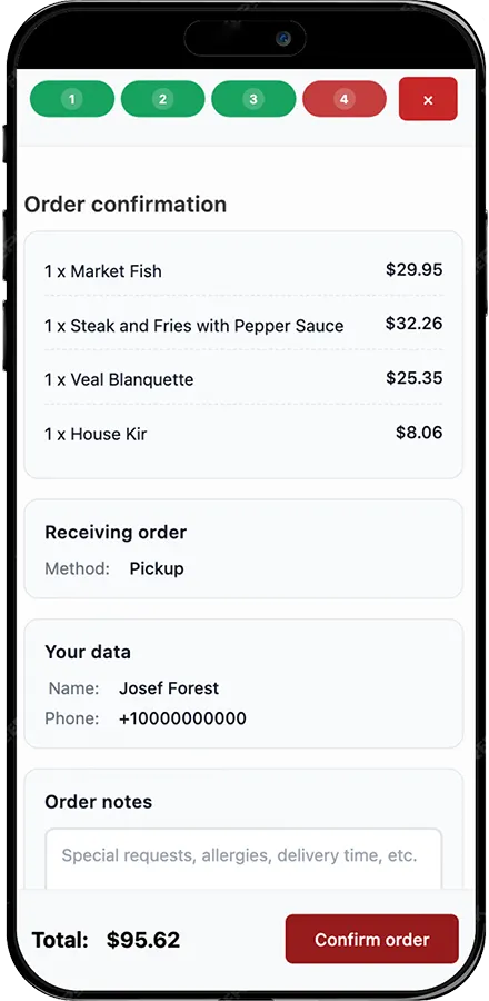 - Guests can place orders directly on your restaurant website.
